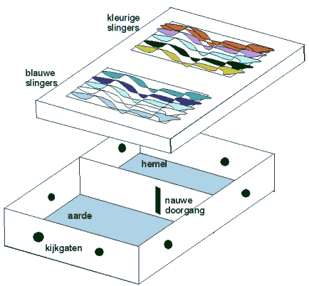 de wanden van het andere vak (de aarde) bijvoorbeeld met bomen