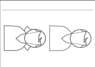 die naar beneden wijzen, en een valse mond met grote tanden. Vergeet