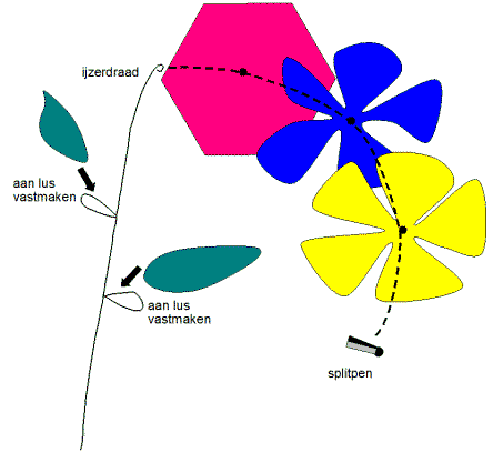 de een maakt alleen maar een stengel (van ijzerdraad of karton), een