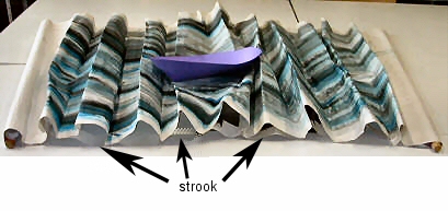 (dwars op de golven) stroken papier om de golven op hun plaats te